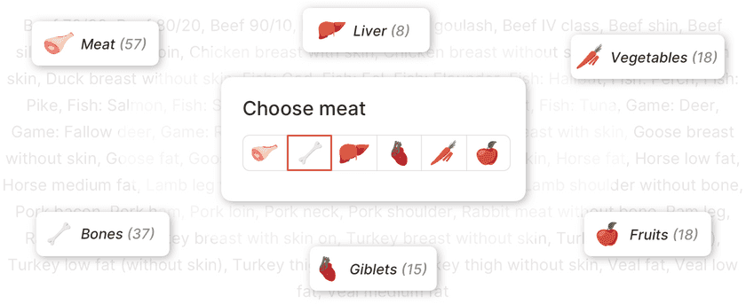 We have handy defaults for you if you just started with BARF. But if you are experienced you can customize almost everything.