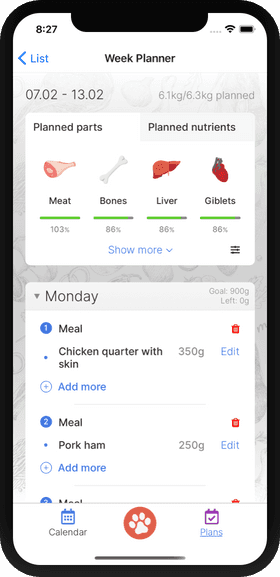 BarfPlan in a mobile application that will help you planning and sticking to a nutrition plan for your dog.