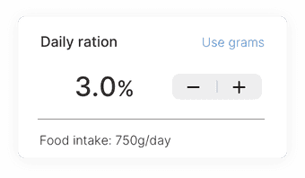 As an example, let’s look at food intake (daily ration). Typically you’ll find it defined in percentage but sometimes it’s just easier to use grams. For example, to round it to the nearest nice looking number.