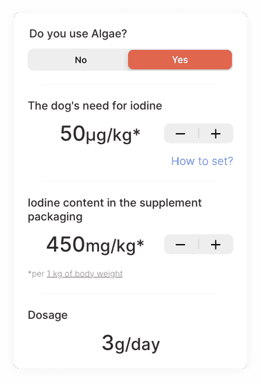 Well, it depends on the supplement. We have all the formulas but long story short it can depend on your dog’s current body weight, on norms established by certified authorities, or on the current consumption of „active substance” based on the food plan for a day.